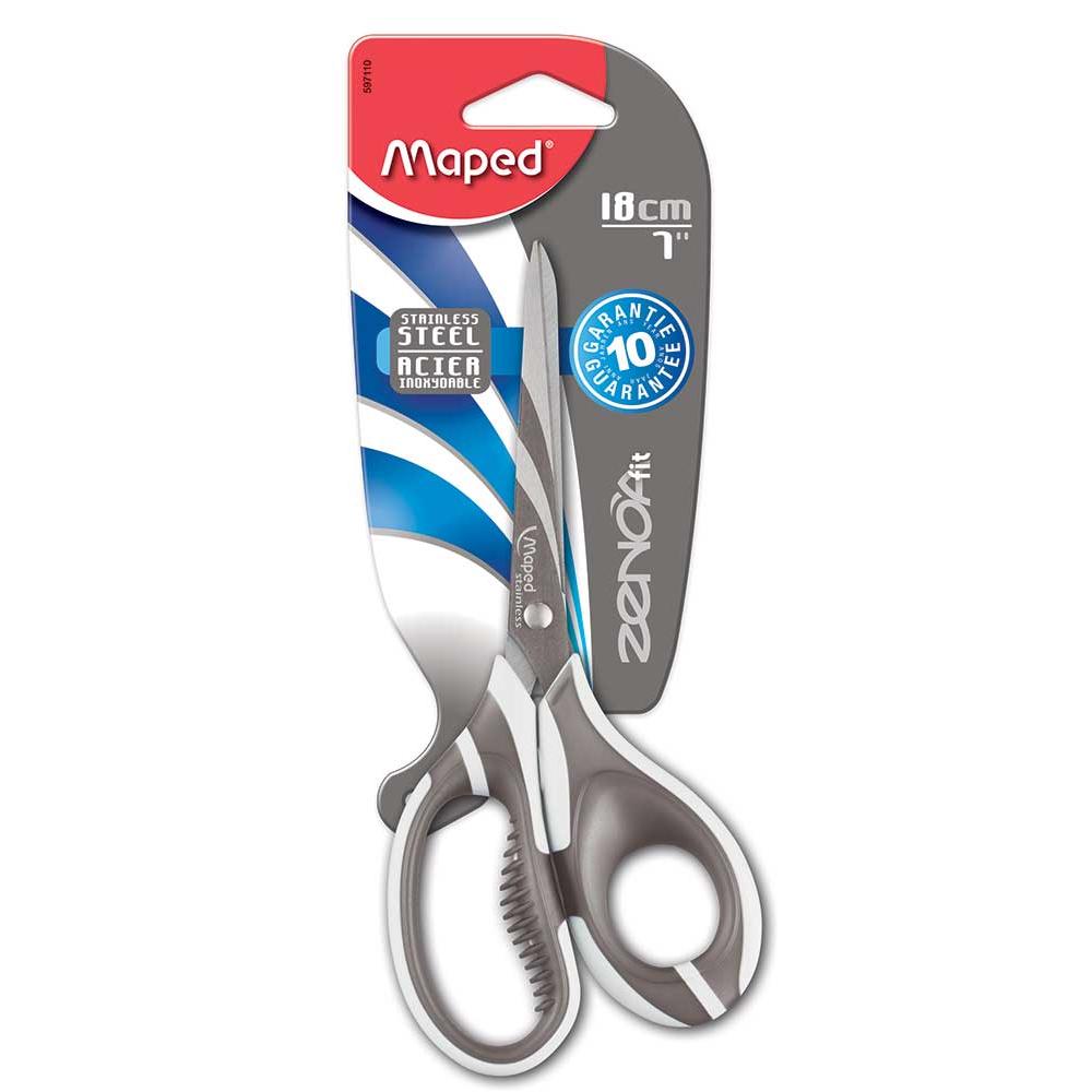 Škarje Maped Zenoa fit so primerne tako za šolo, kot tudi pisarno. Velikost 18 cm z gumiranim ročajem.